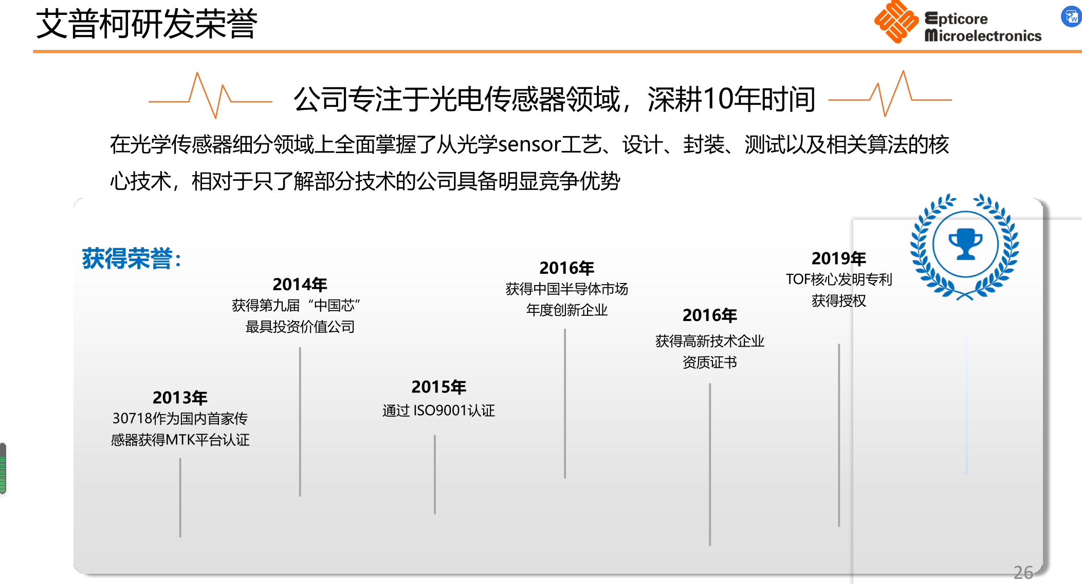 艾普柯微电子(江苏)有限公司是一家专注于为各类市场提供光电解决方案的高新技术企业。 主要产品包括环境光 传感器( ALS ) 、距离传感器 (PS)、心率(HRS)传感器、 TOF传感器面阵等光学传感器及其相关方案。
