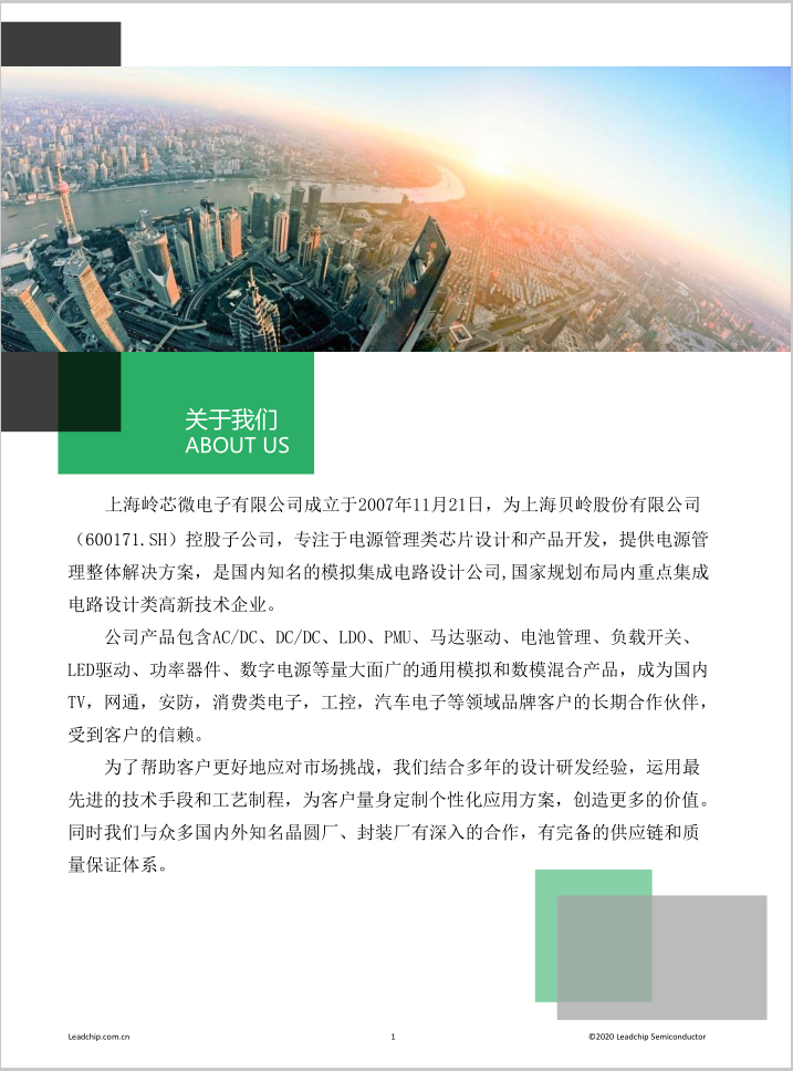 公司产品包含AC/DC、DC/DC、LDO、PMU、马达驱动、电池管理、负载开关、