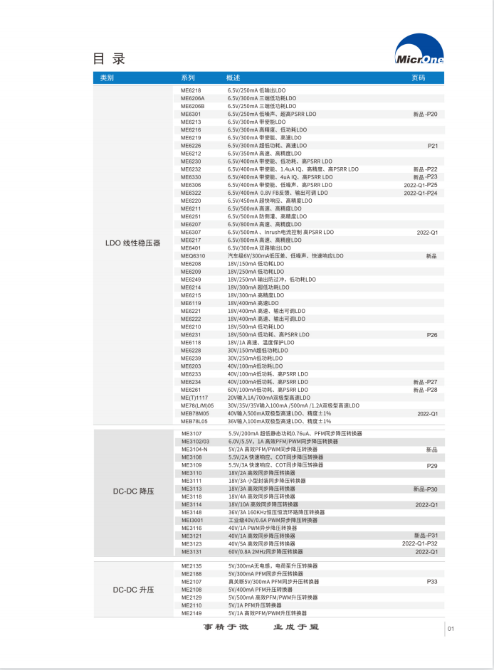 微盟电子致力于开发电源管理类产品,主要包括LDOsDC-DCsAC-DCsLED DRIVER.锂电充电管理、锂电保护、电压检测、音频功放、数模混合等,井为电子设备 的主芯片及相关器件提供优质、稳定的电源解决方案。我们的产品目前已广泛用于家 用电器、手机、充电器、适配器、安防监控、智能电网、工控设备等领域。